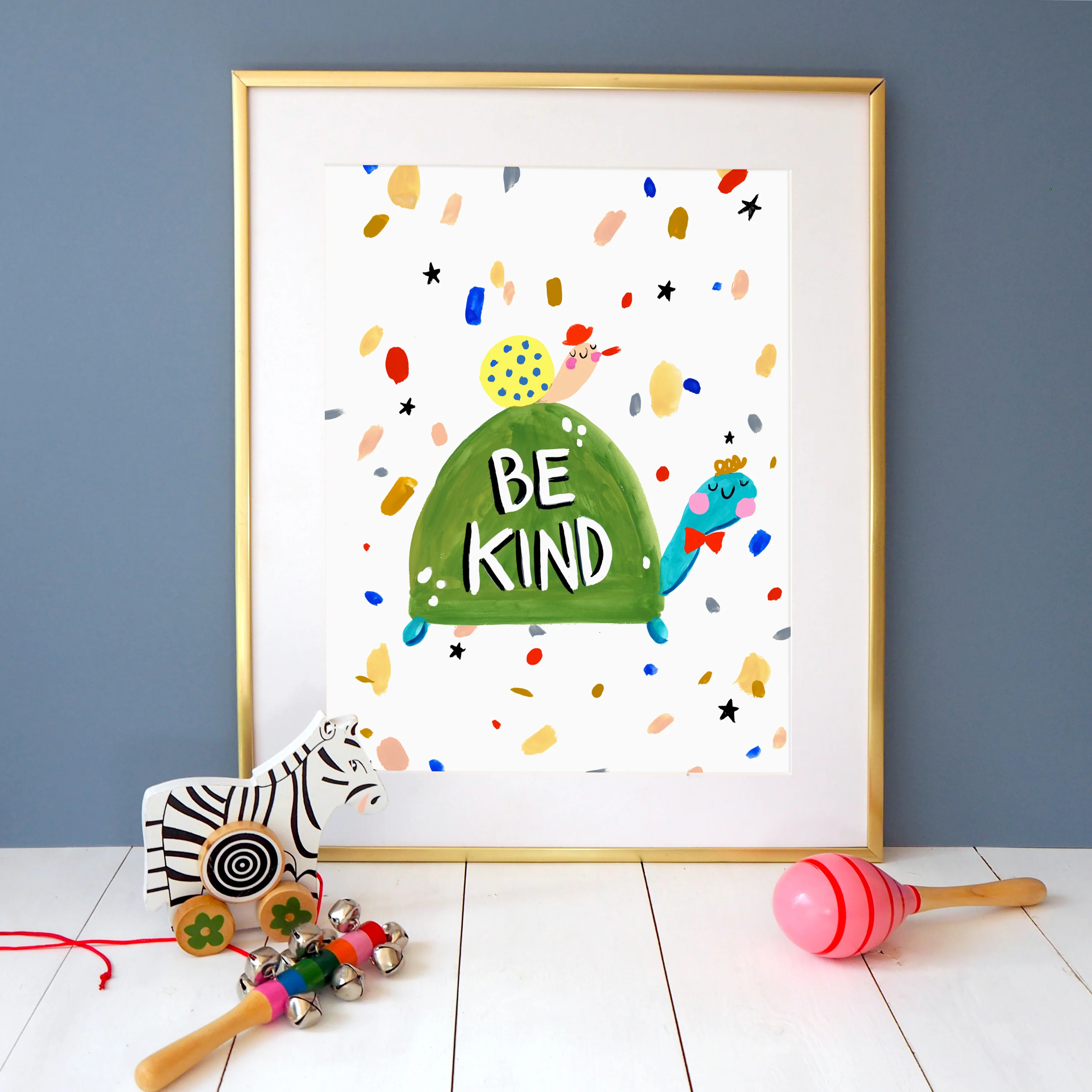 From our new range, our Be Kind Tortoise is a versatile print, which can be purchased for all ages and any room.